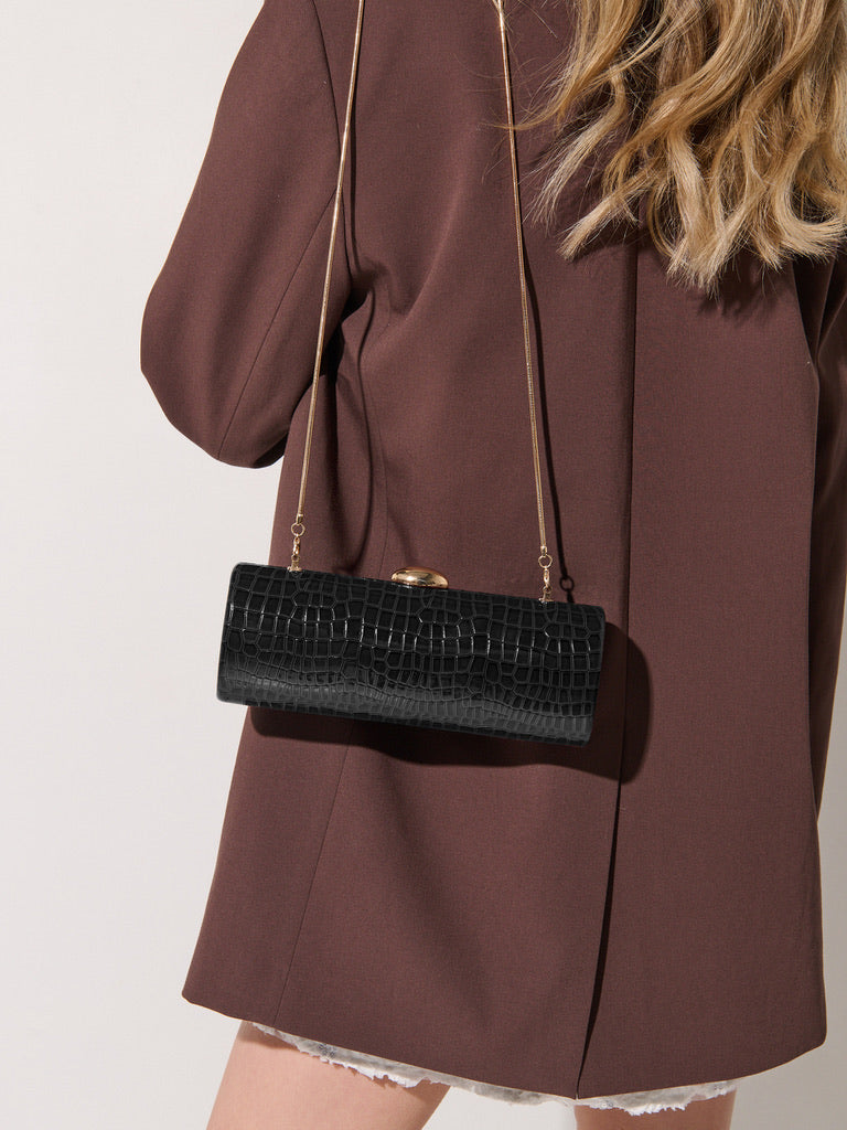 Exude elegance and timeless style with our Chelsea Evening Clutch Bag. Featuring premium croc textured outer shell, this statement piece brings a touch of luxury to any special occasion.