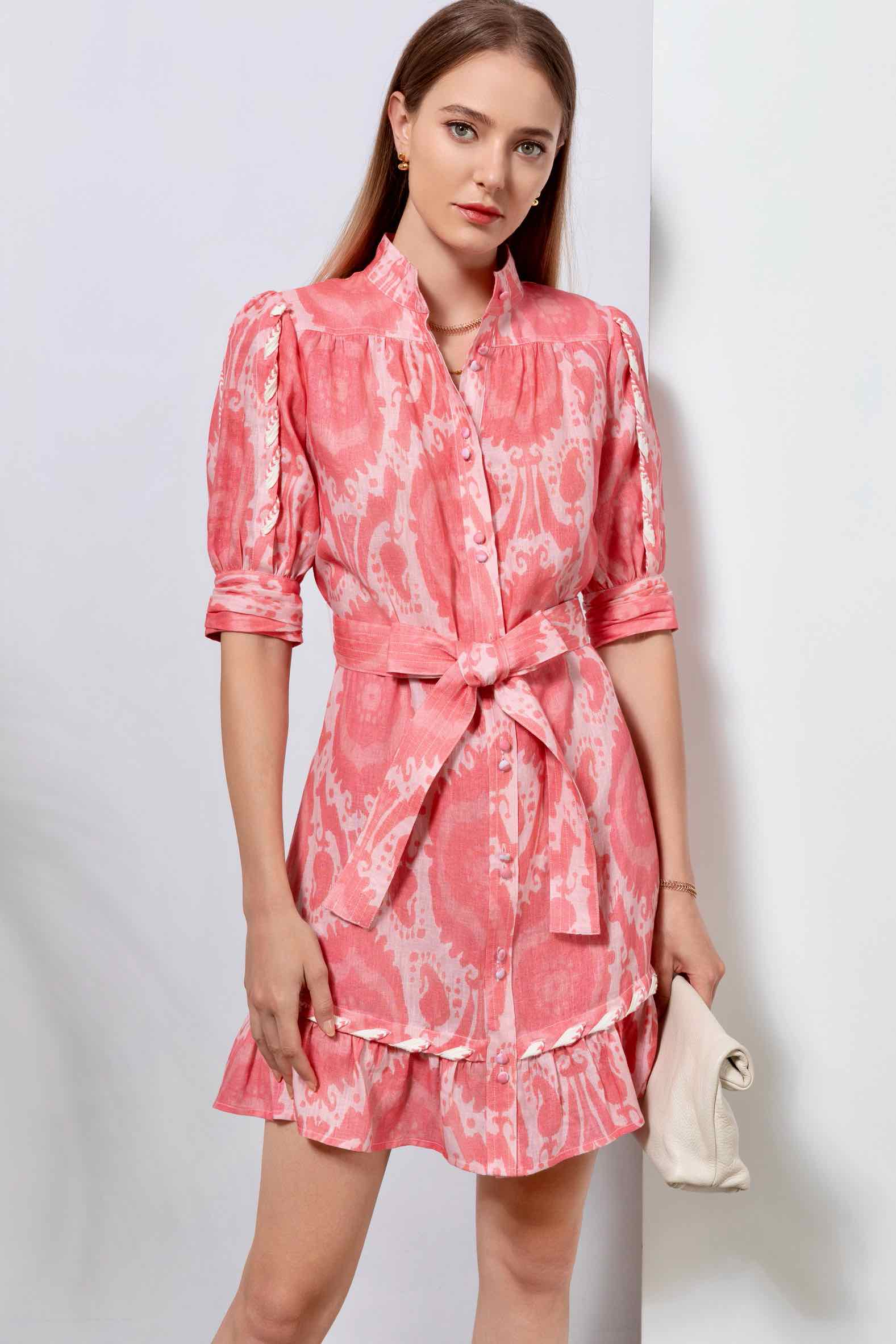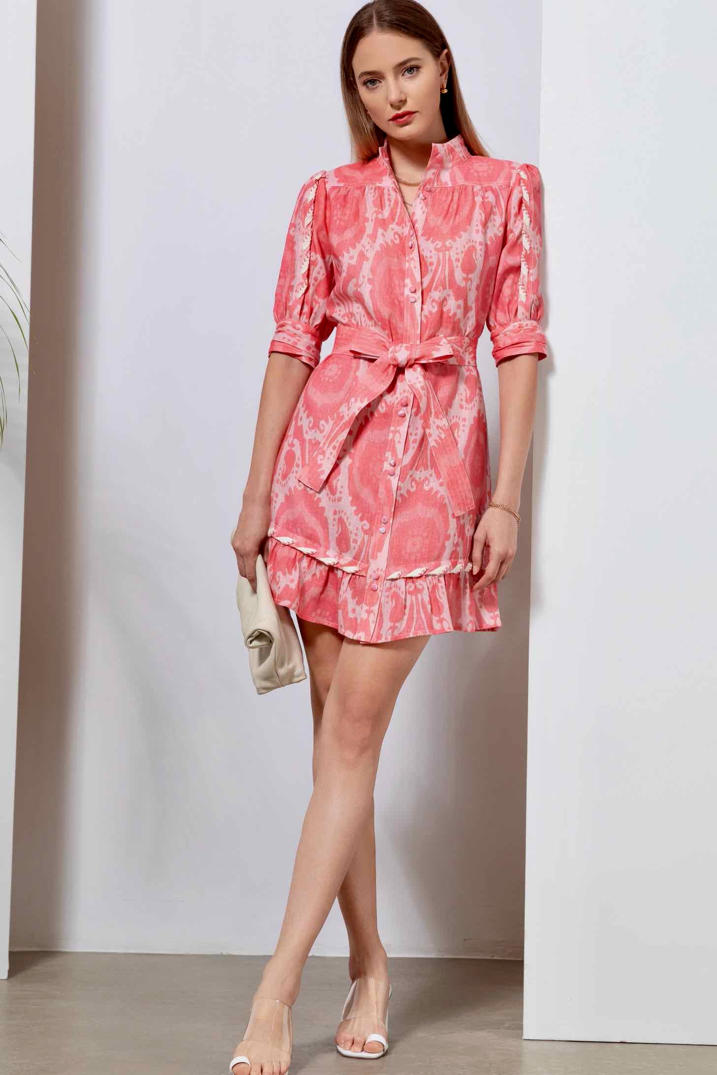 Ada Linen Mini Dress - Pink