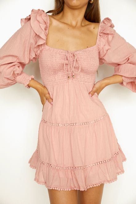 This gorgeous mini dress features a shirred bust with tie, puff sleeves with ruffles on the shoulder, and a cute and flattering a-line skirt. The Amy dress is so flattering and pretty on!