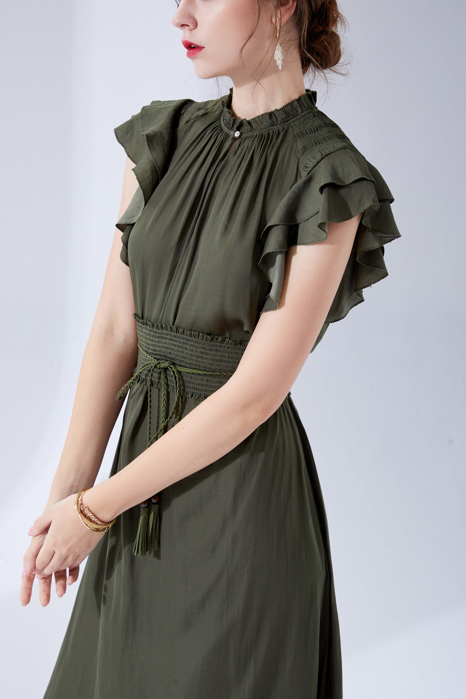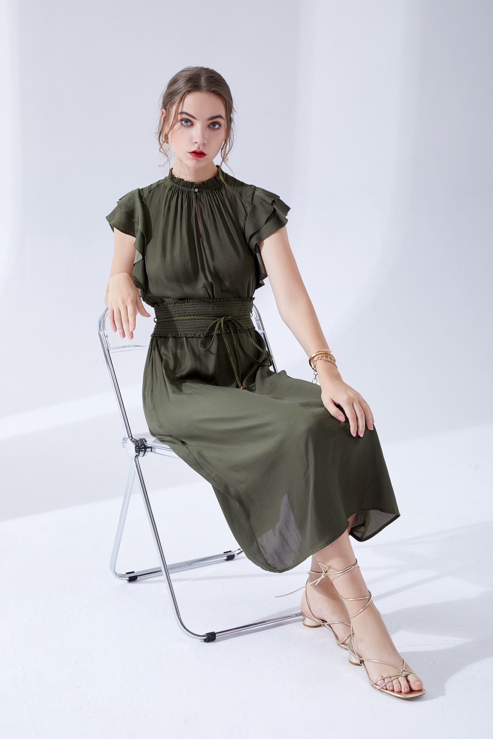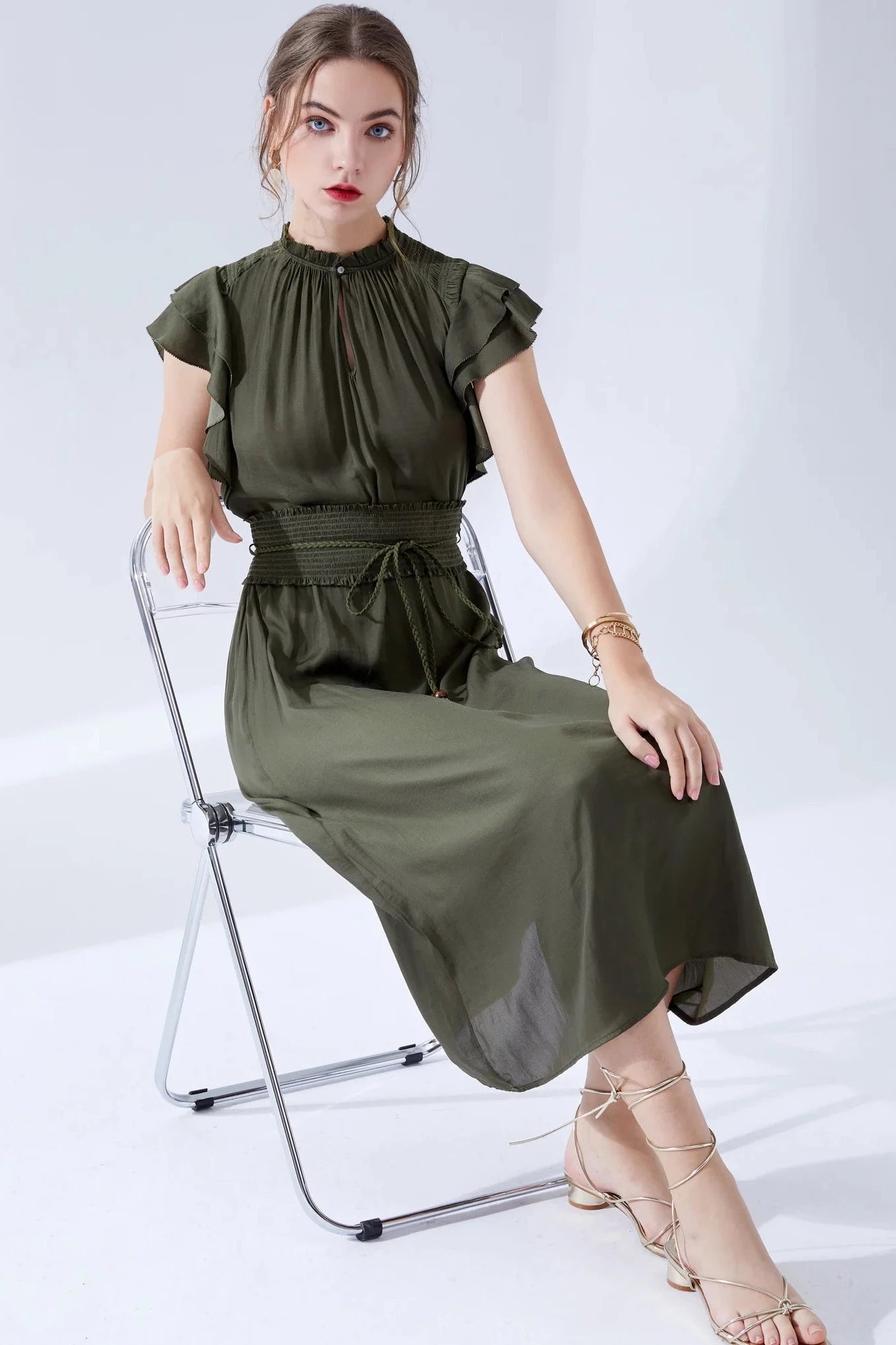 Elegance meets versatility in this enchanting Selena belted dress featuring gracefully ruffled cap sleeves, adding a touch of romance to the timeless design. The removable waistband allows you to customise your look, whether opting for a cinched silhouette or a flowing, free-spirited feel. A perfect blend of sophistication and adaptability, this dress is destined to make a statement at any special occasion.
