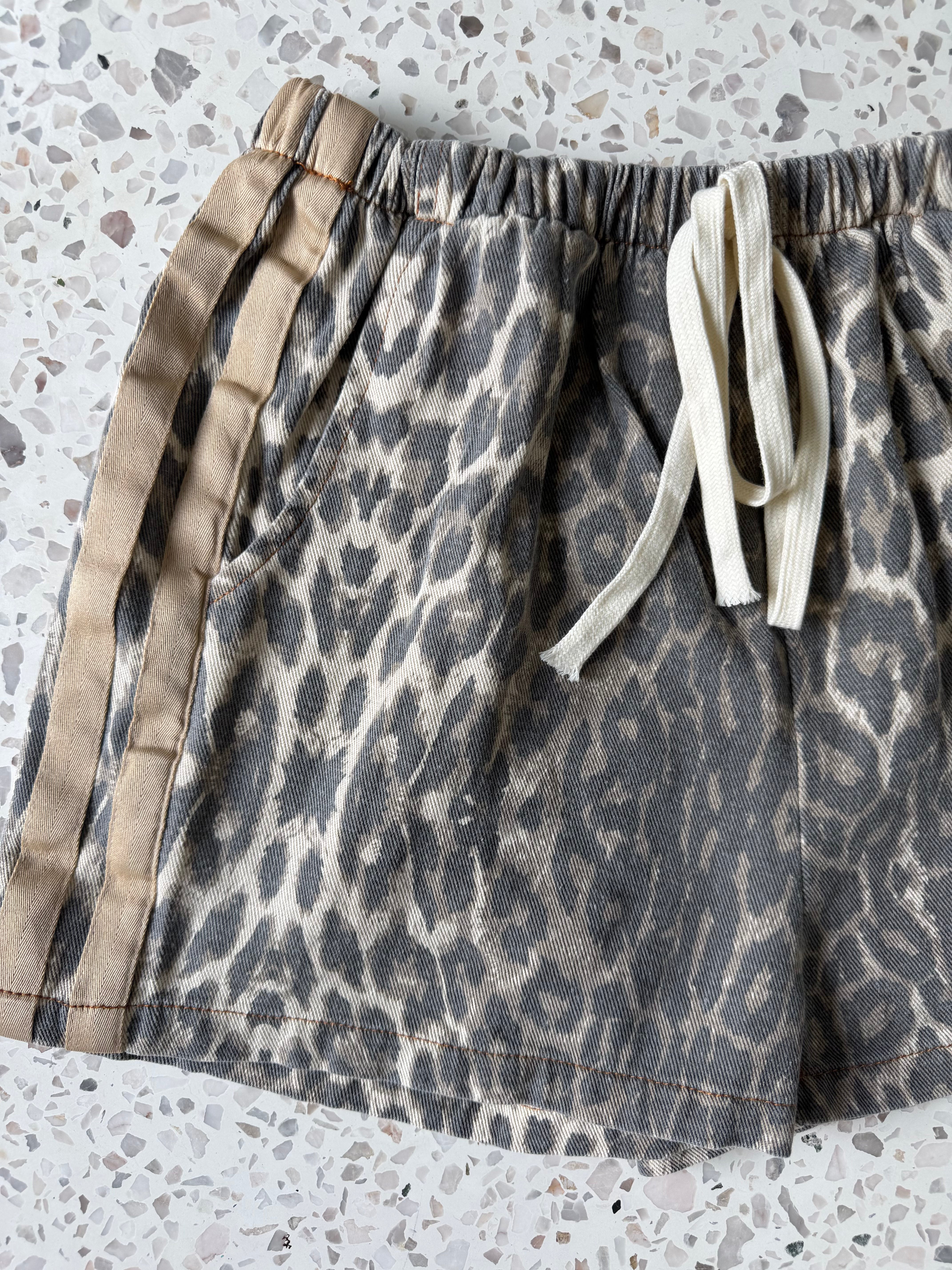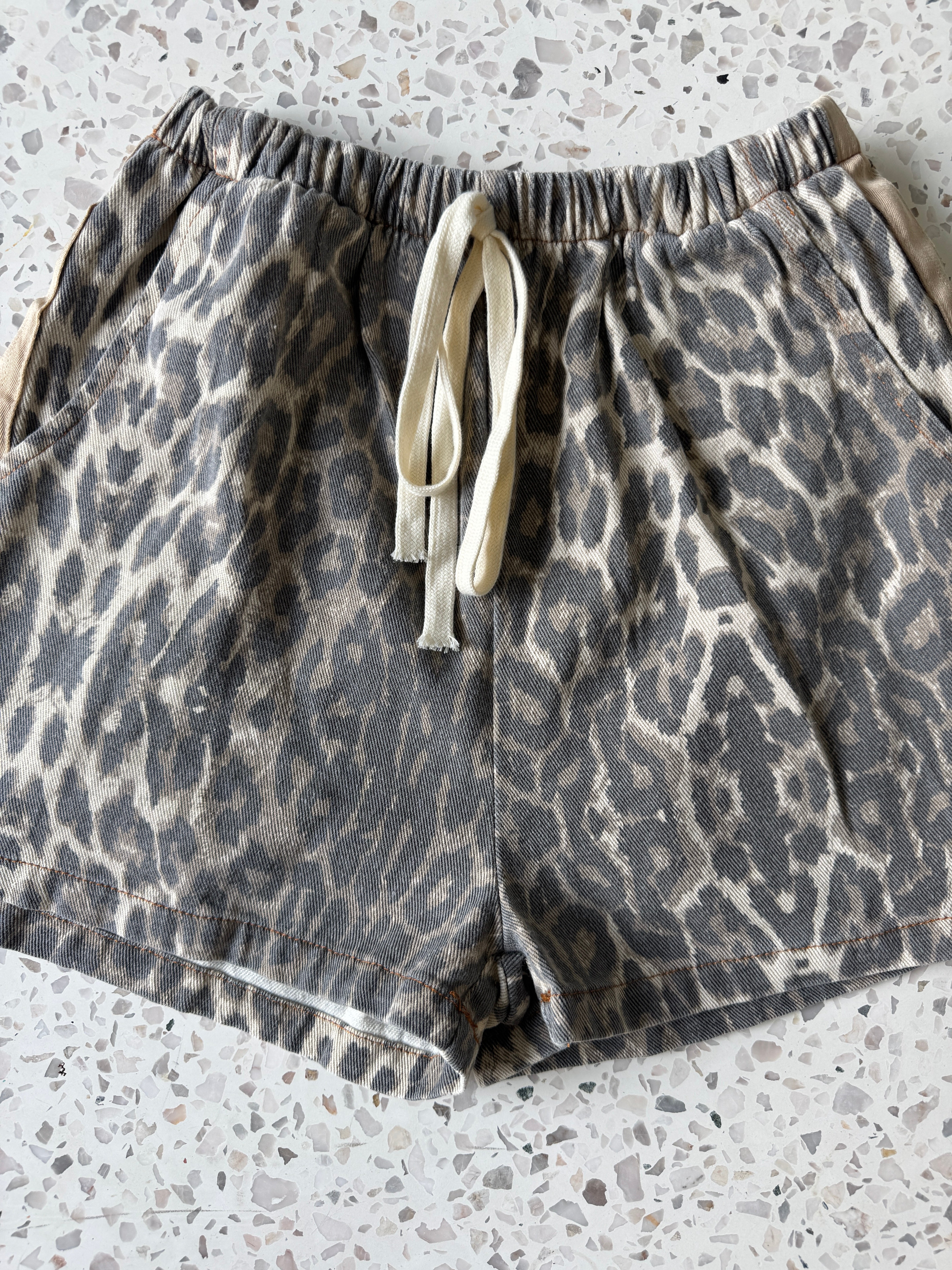 The By Frankie OG Leopard Racer Denim Shorts are the perfect fit for denim lovers.