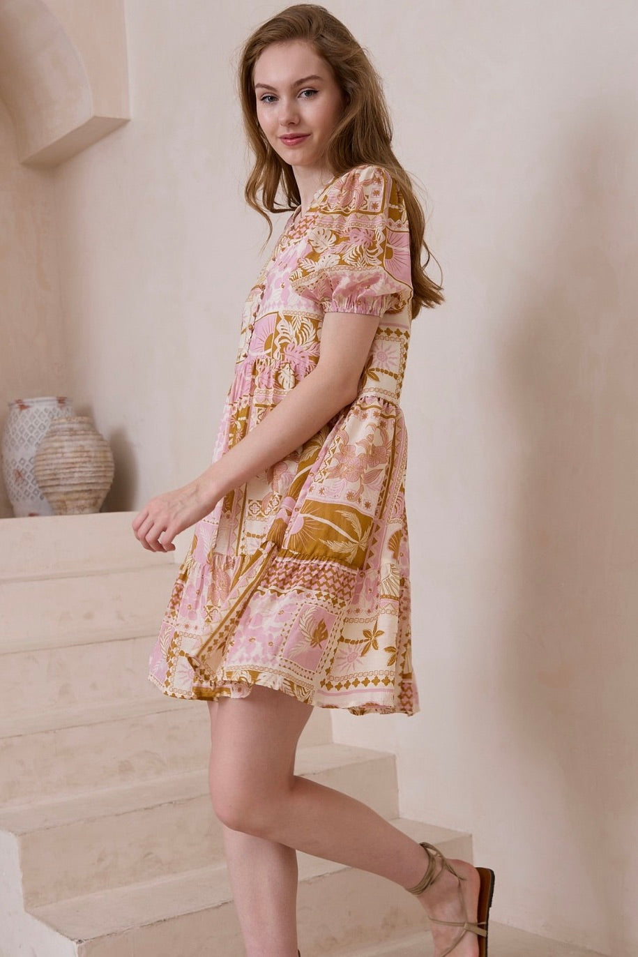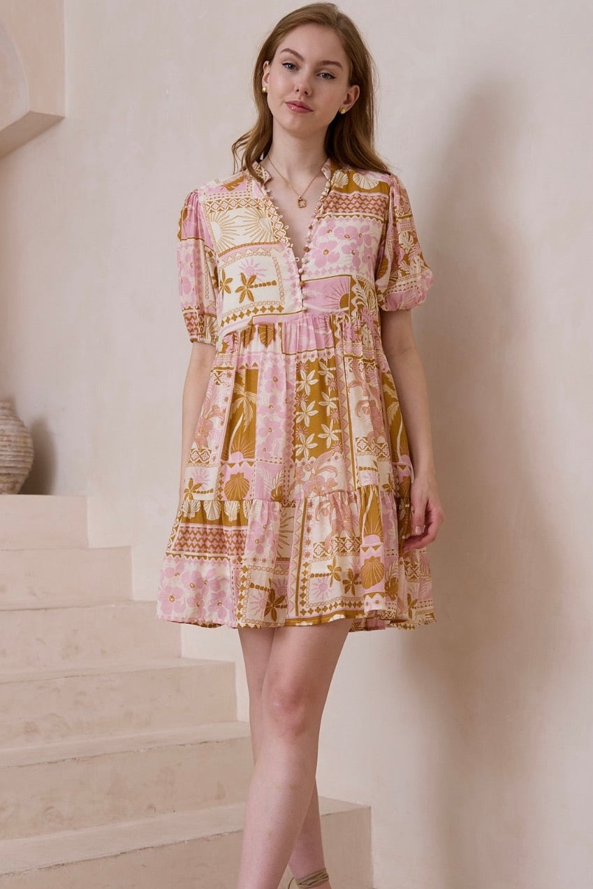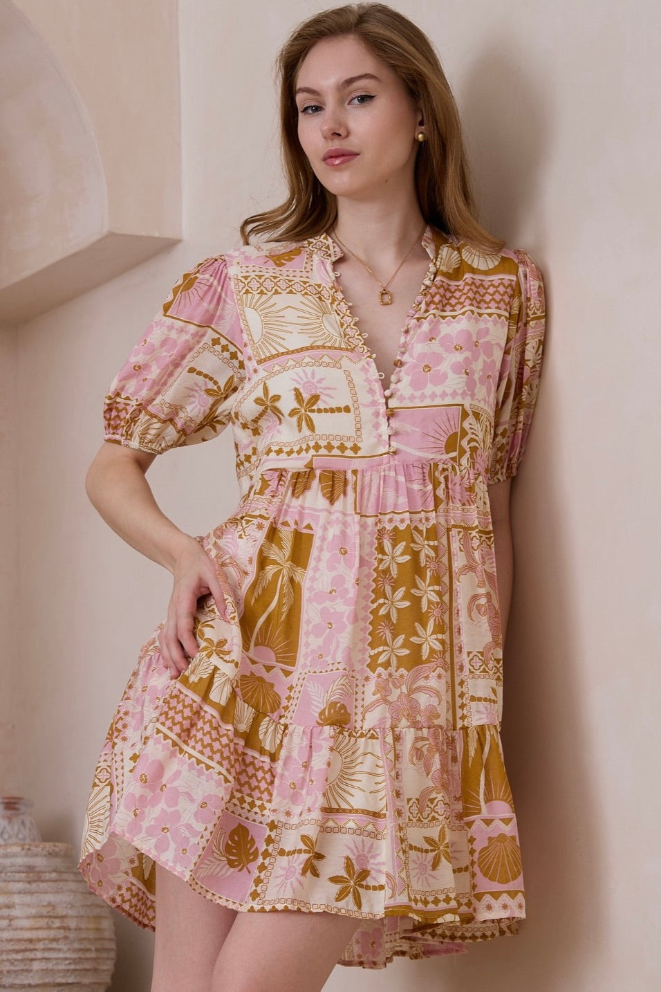 This beautiful mini dress is suitable for most occasions. The Lena mini dress features a V-neckline, a button down bust, and pockets.