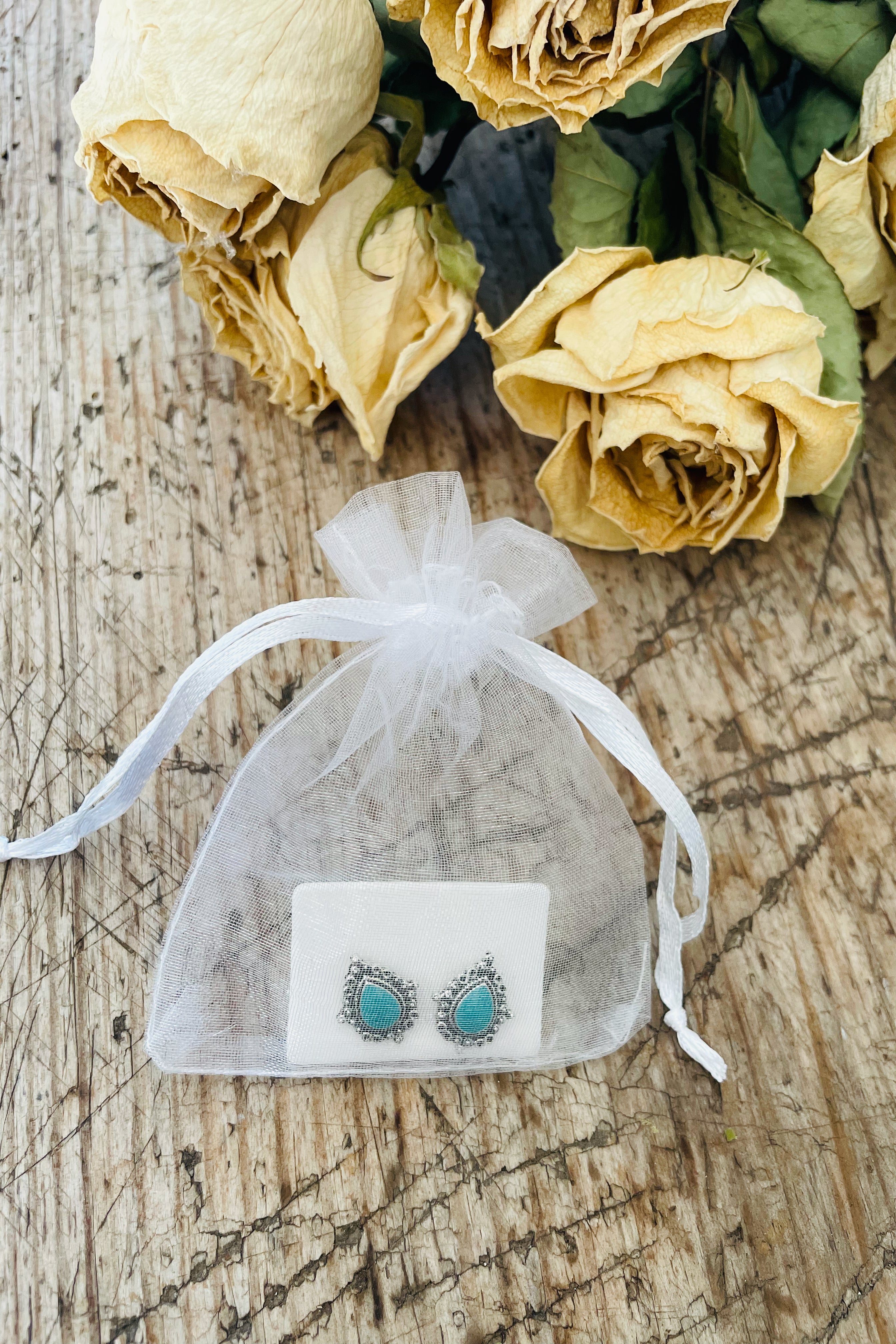 The pretty studs come in a sweet little organza bag.