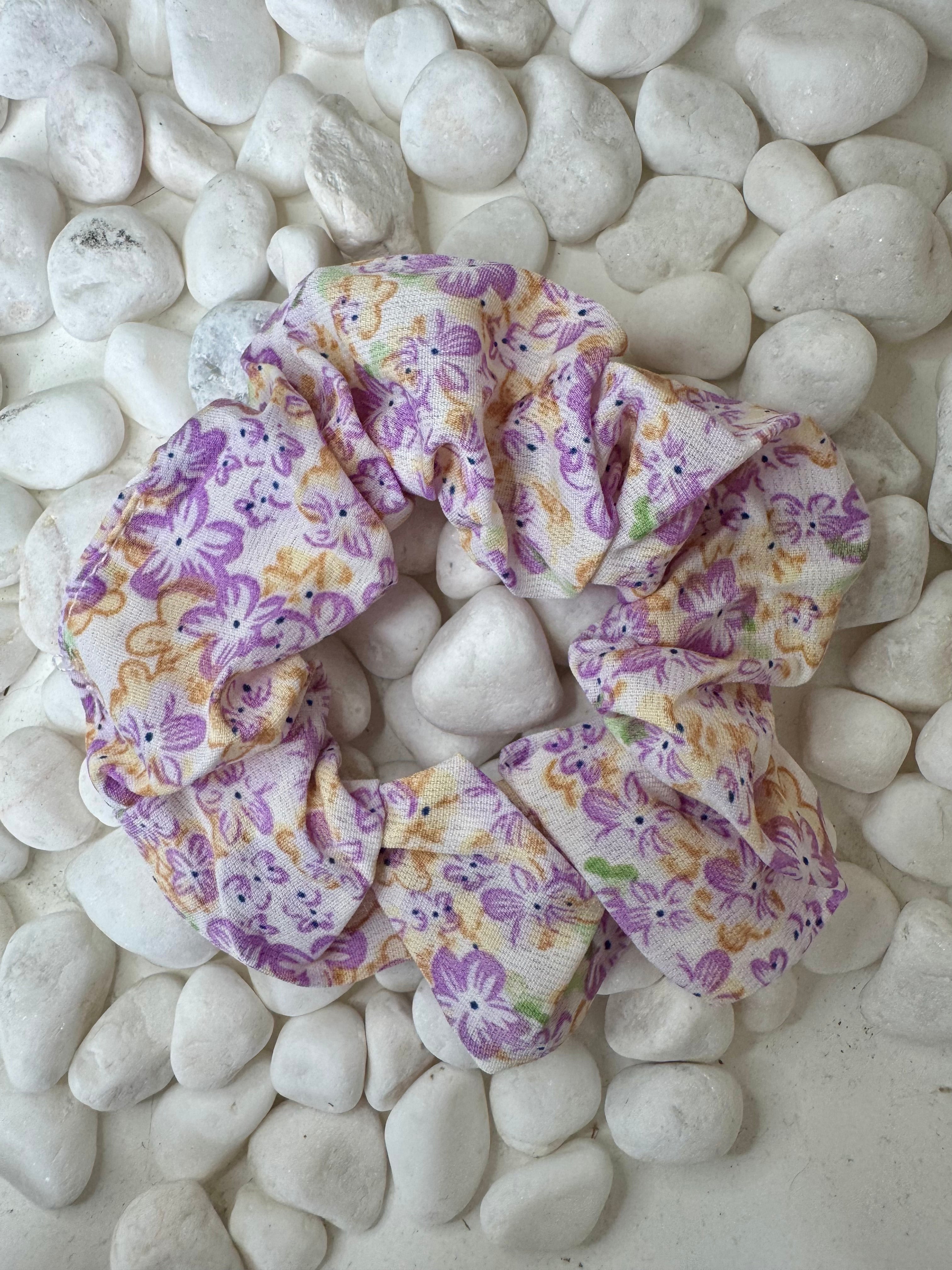 Gorgeous purple floral scrunchie that can be worn all year round.