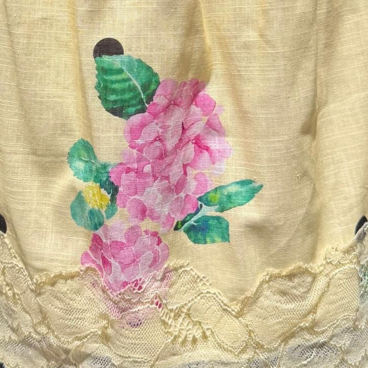 Super versatile, this mini skirt features a floral polka-dot print with delicate lace trim. Crafted from a cotton fabric with a linen-look finish and fully lined for comfort, it also features an elastic waistband that moves with you.