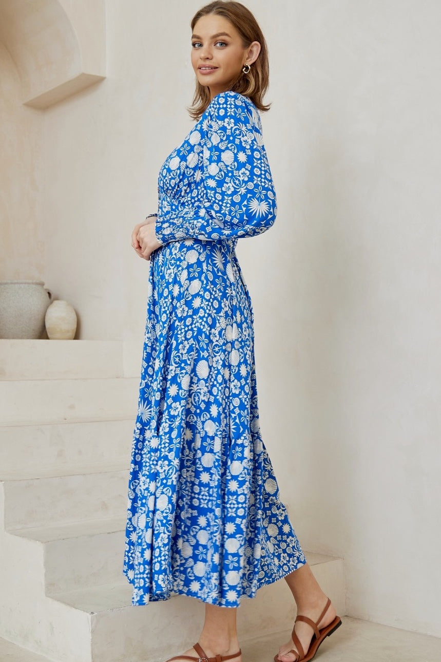 Everything about this Maxi scream perfection. The 'Delaware Maxi Dress' is a bright blue and white maxi featuring long sleeves, a button down bust and is a flattering shape.