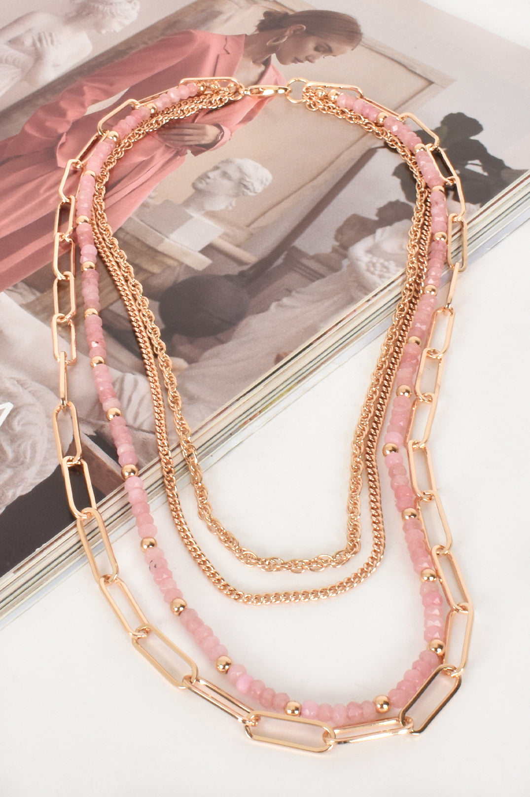 This beautiful necklace is four necklaces attached to one clasp.