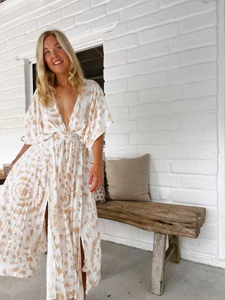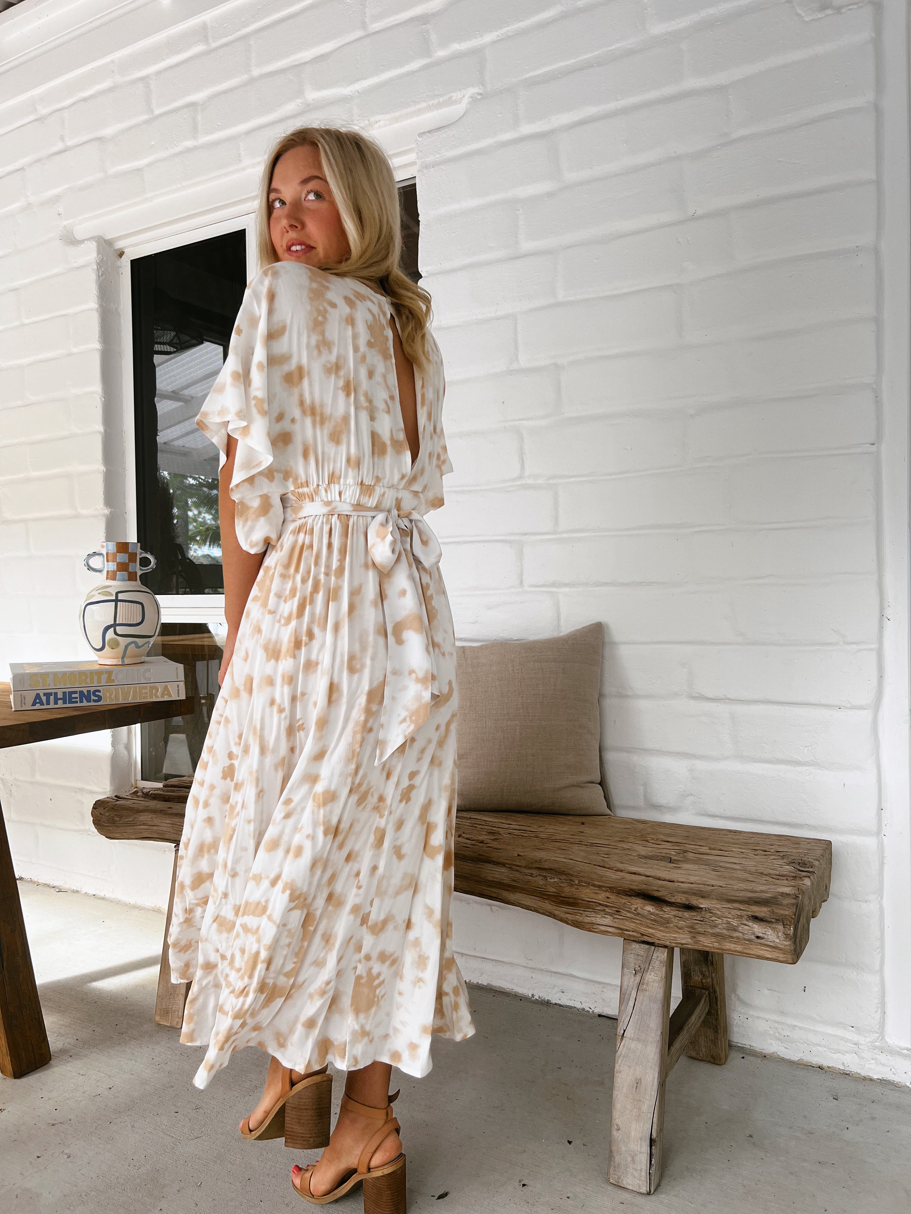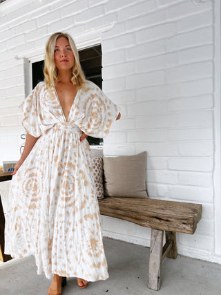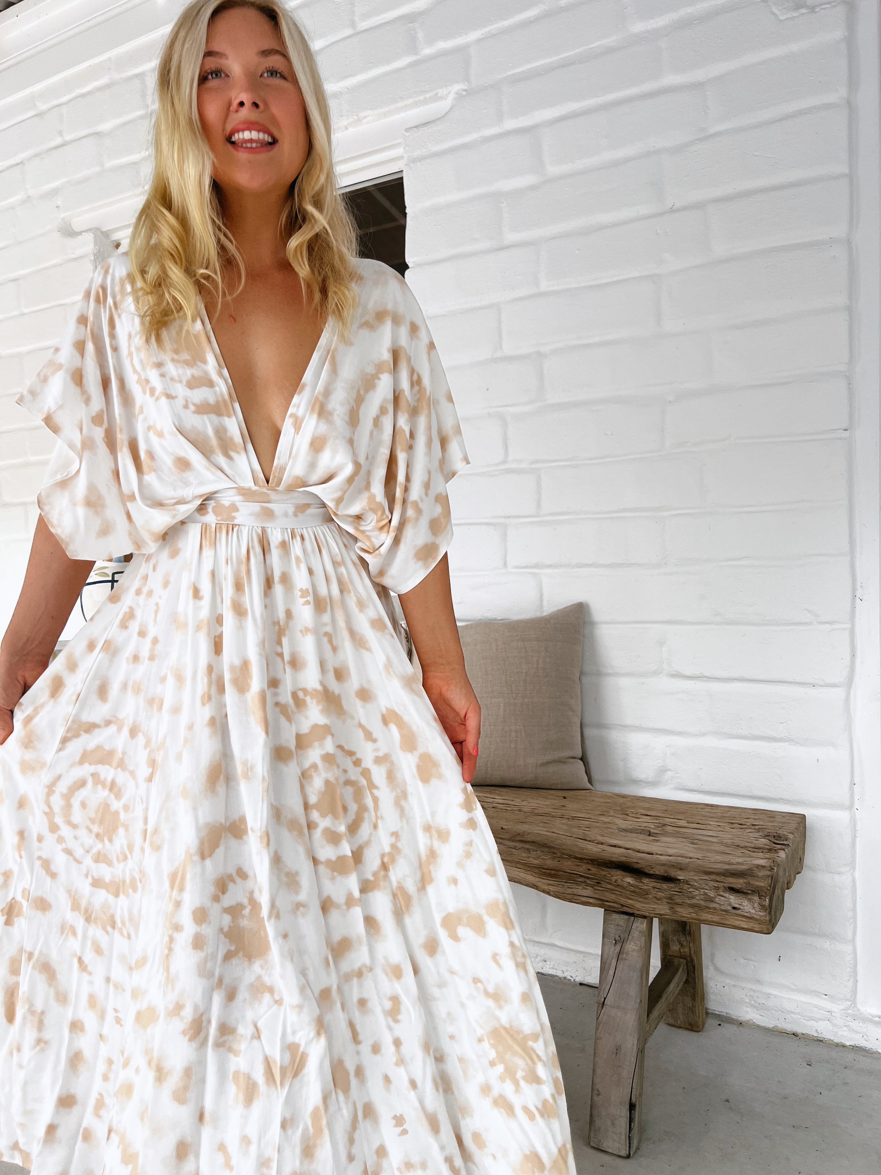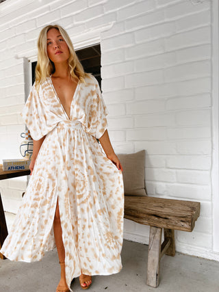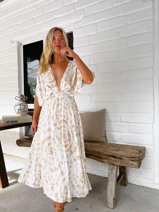 This simple cut is in a natural tone, perfect for this season. The relaxed sleeve and the flowy skirt will have you feeling like a bohemian goddess.