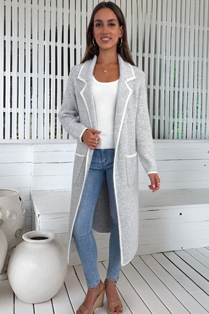 Elevate your wardrobe with the beautifully crafted Baltimore Cardigan/Jacket. Made from a luxuriously soft knitted fabric, this versatile piece features a longer length for added coverage, practical pockets, and bold contrast hems that bring a touch of visual intrigue. The folded lapel collar adds a timeless, tailored finish—perfect for layering season after season.