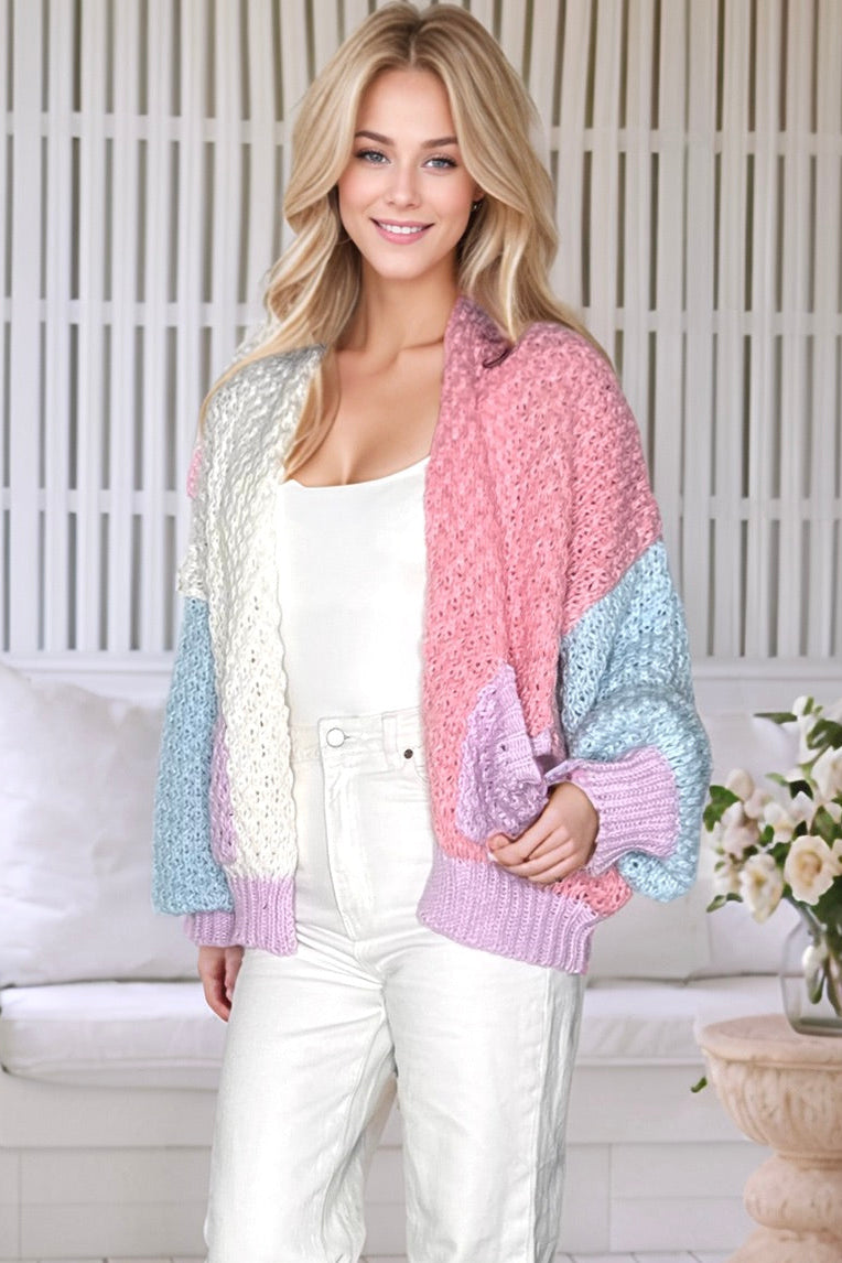 So Cosy – Embrace the chill in style with this chunky waffle knit cardigan, your ultimate staple for cooler months. Designed with a unique waffle texture and a bold colour block pattern, it brings both warmth and a striking pop of colour to your wardrobe. The soft, knitted fabric feels as cozy as it looks — ideal for layering on crisp days. Whether you're dressing for a casual outing or a relaxed evening in, this effortlessly chic cardigan adds comfort and character to any look.