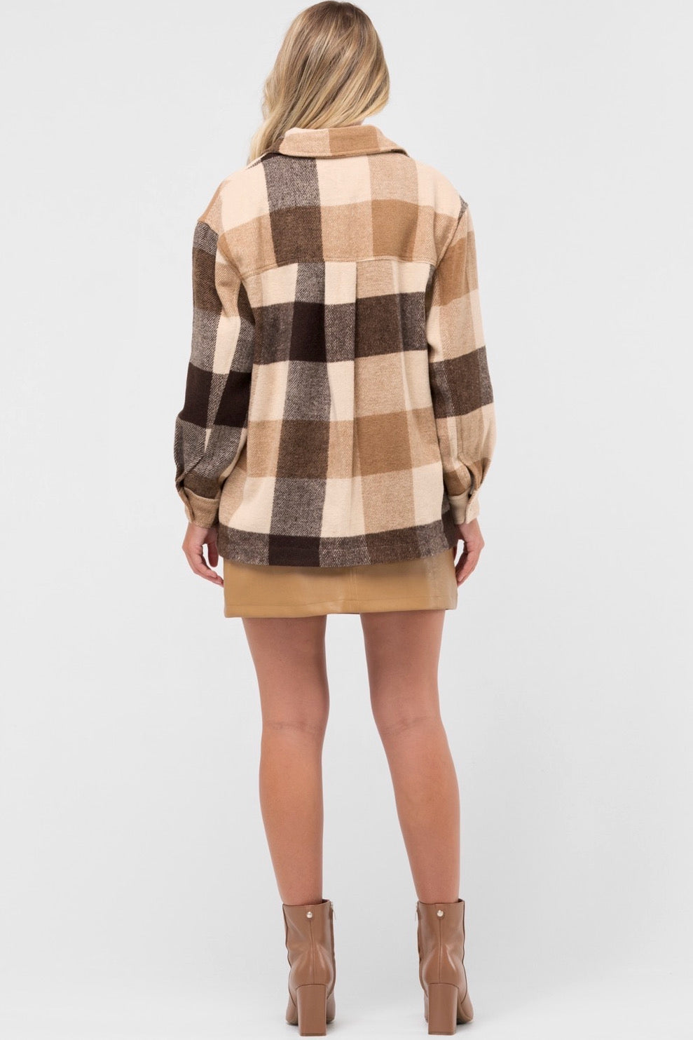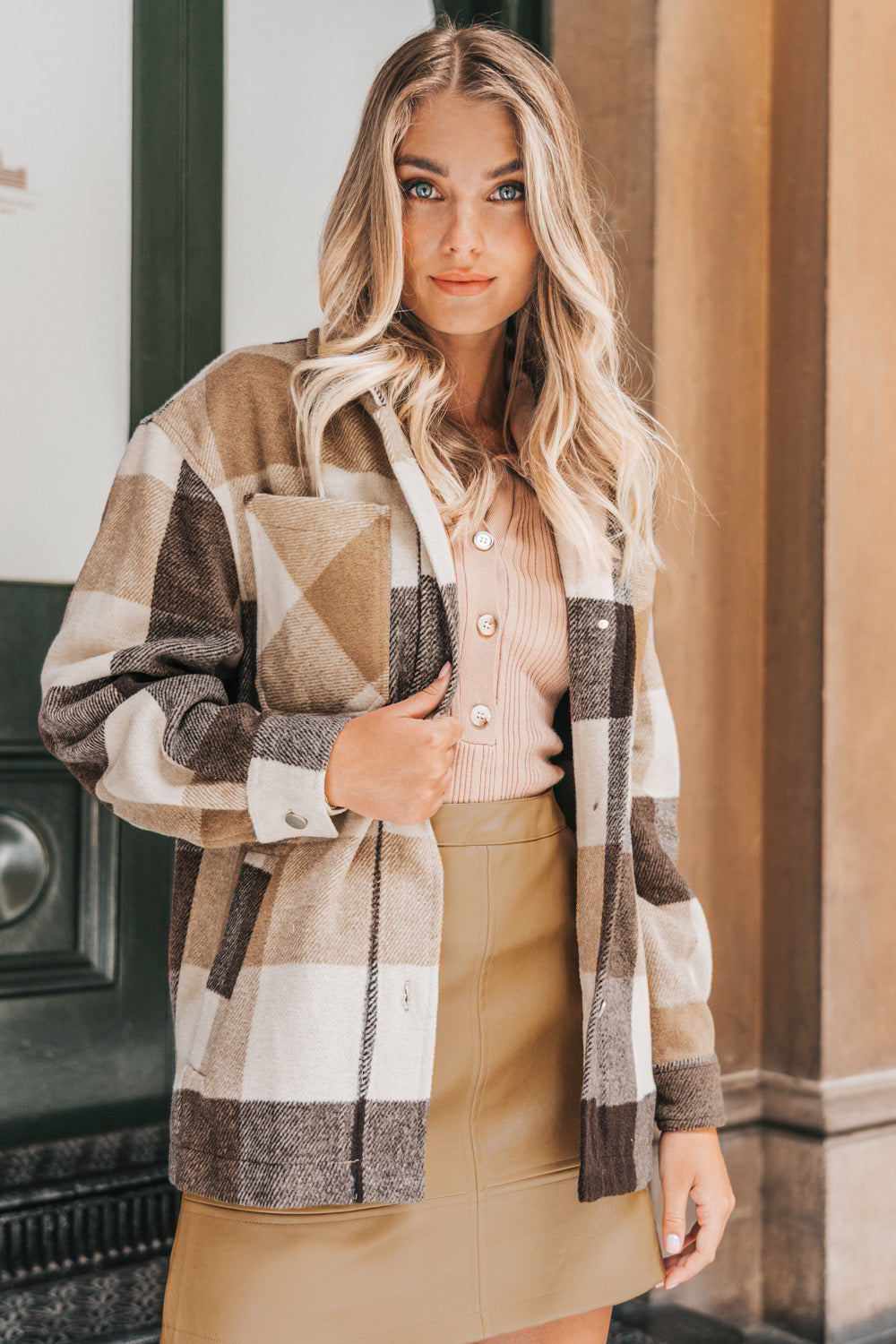 This stunning shirt jacket, will be your go-to jacket that you can throw over jeans and a skirt when your running out the door.
