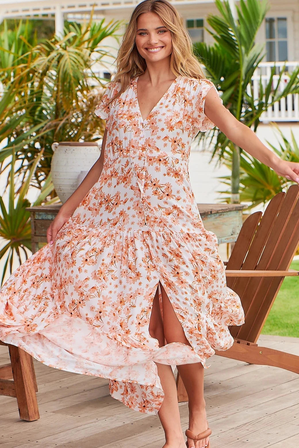 This beautiful Maxi dress is the perfect colour combination of orange and white
