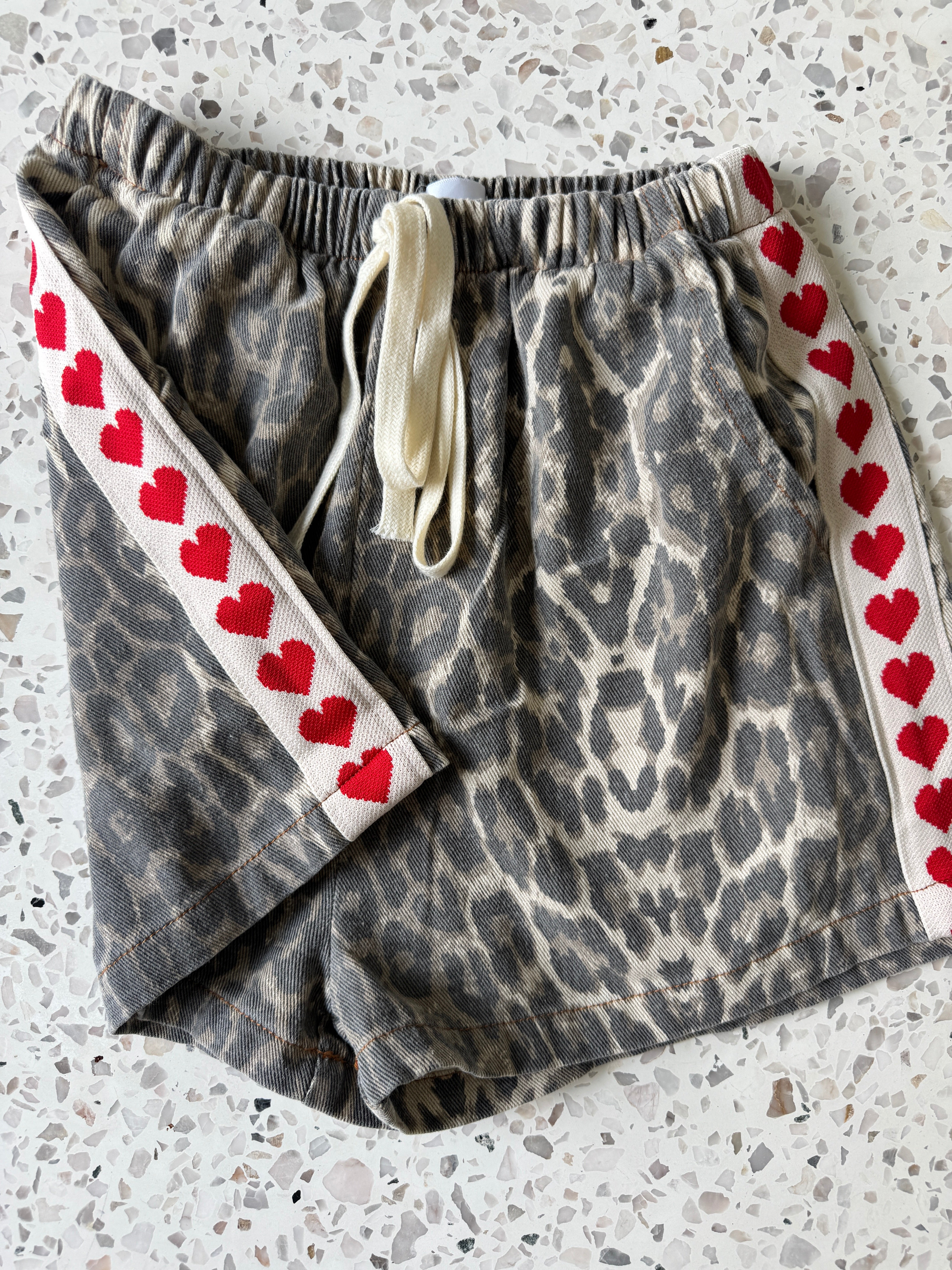 Leopard Racer Denim Shorts Red Hearts - By Frankie