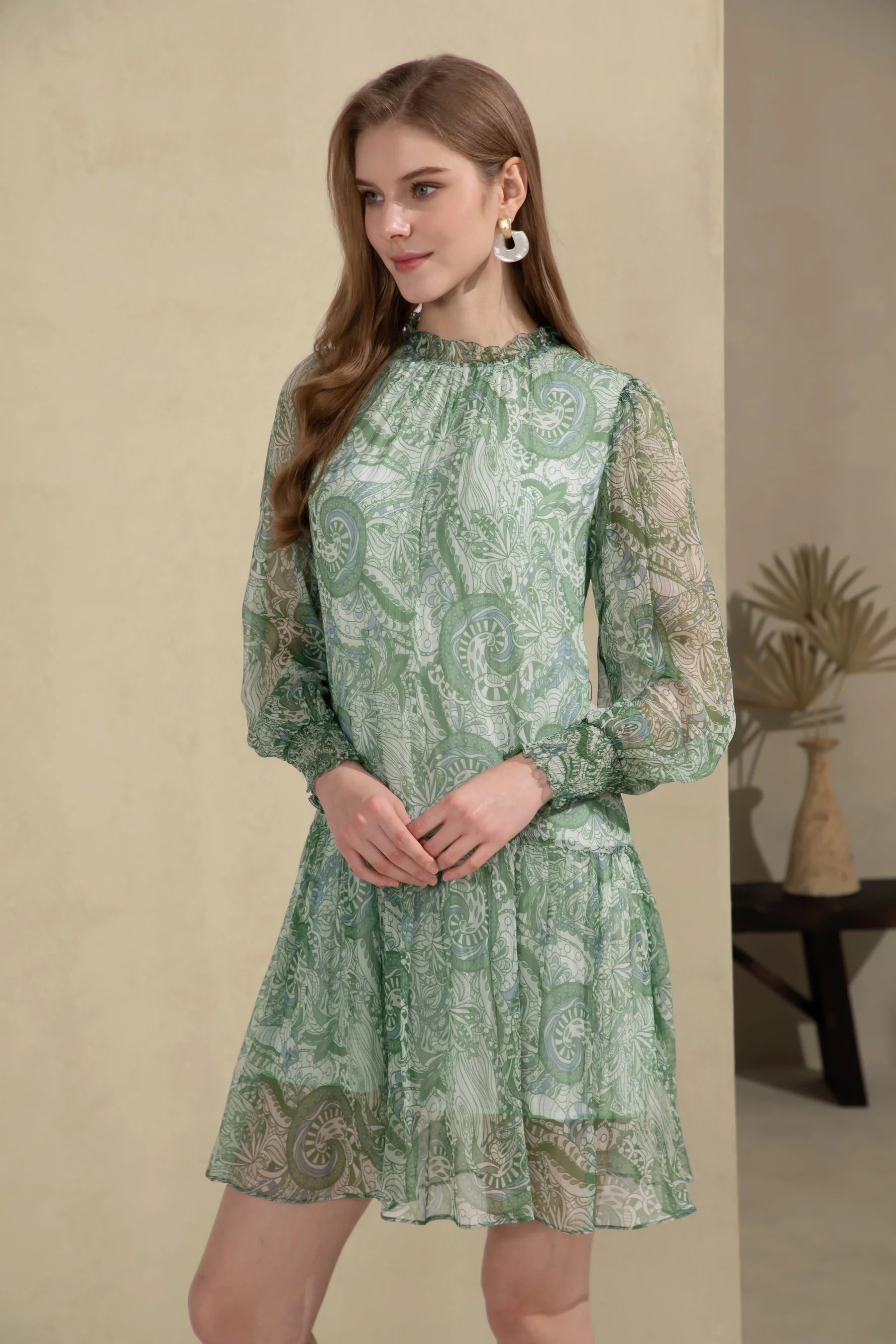 Nathalie Silk Mini Dress - Green