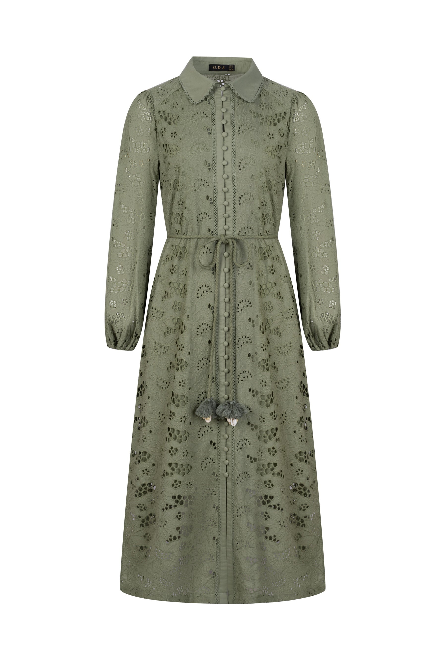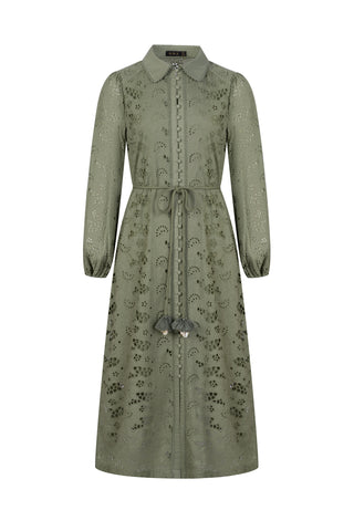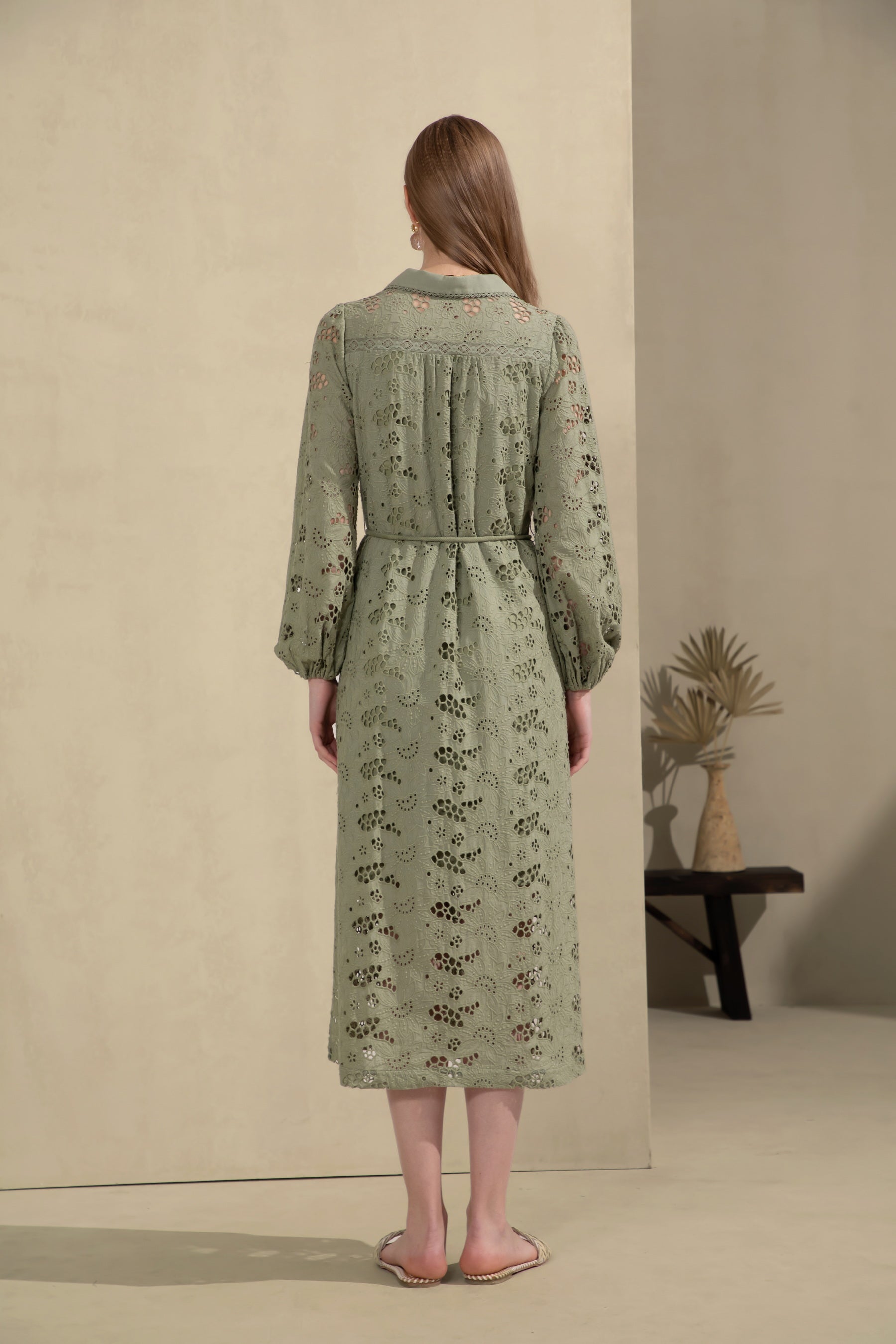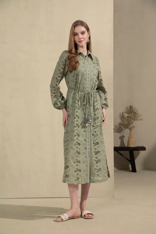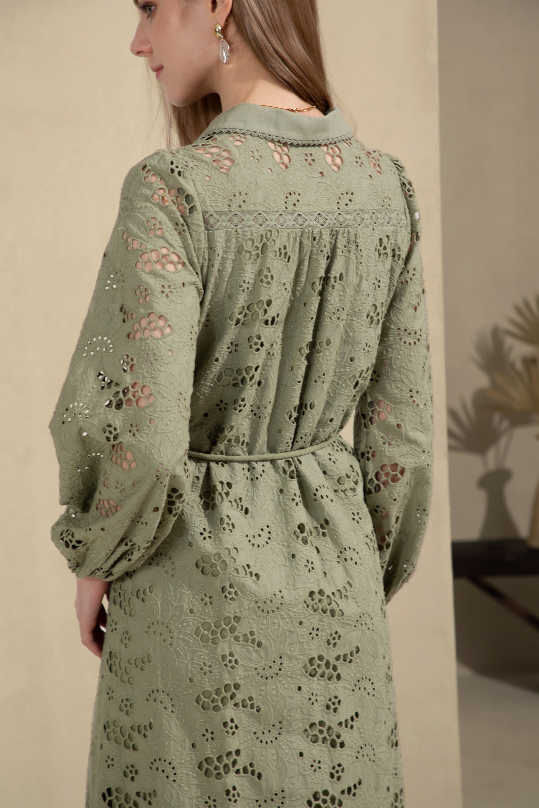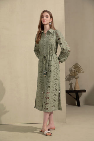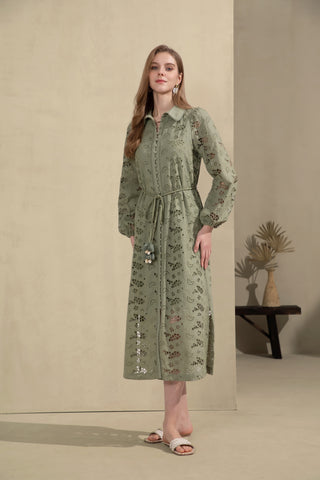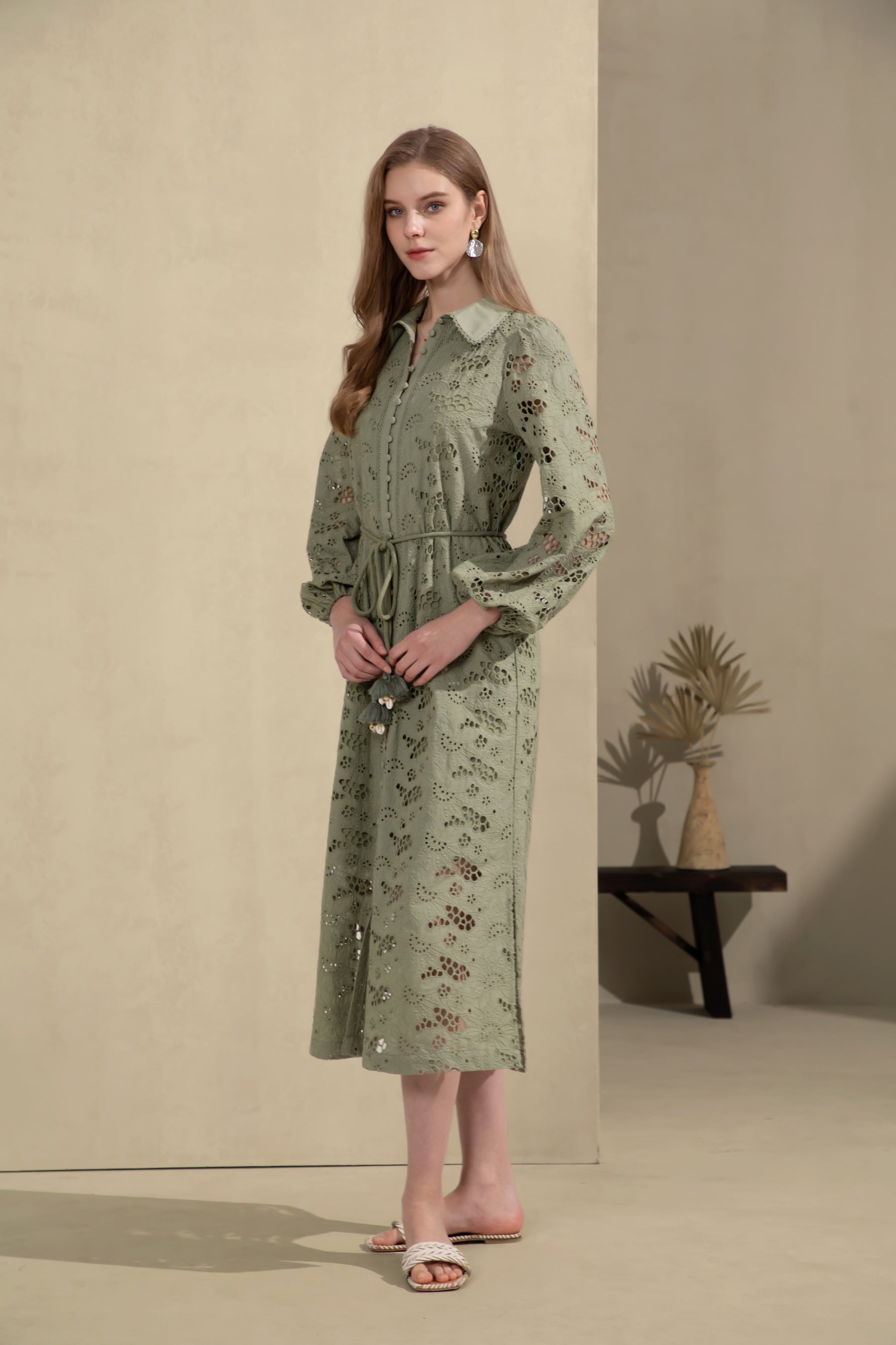 Imagine wearing this elegant dress to a charming outdoor garden party. The long, flowing silhouette and intricate embroidery perfectly complement the natural beauty of a garden setting. Surrounded by blooming flowers and lush greenery, you'll feel effortlessly chic and comfortable. The breathable cotton fabric keeps you cool, while the elegant design ensures you stand out in style.
